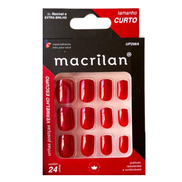 Unhas Postiças Macrilan UP208A curtas especialmente desenvolvidas em uma versão colorida para uma aplicação rápida e segura. Indicadas para uso pessoal e profissional.