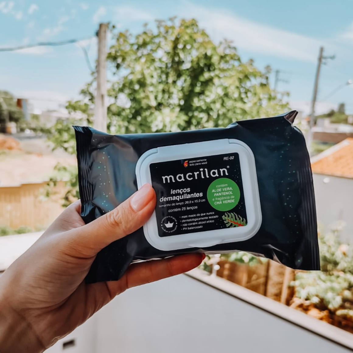Lenços Demaquilantes Macrilan RE-02 especialmente desenvolvidos para retirar toda a maquiagem deixando a pele limpa e macia. Ele é dermatologicamente testado e tem seu PH balanceado, para se adequar bem ao PH da sua pele.