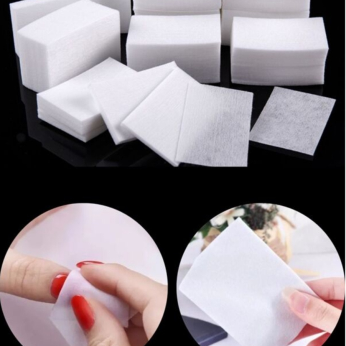 Algodão prensado em lenços utilizado para auxiliar na remoção de excesso de gel em alongamento de unhas.