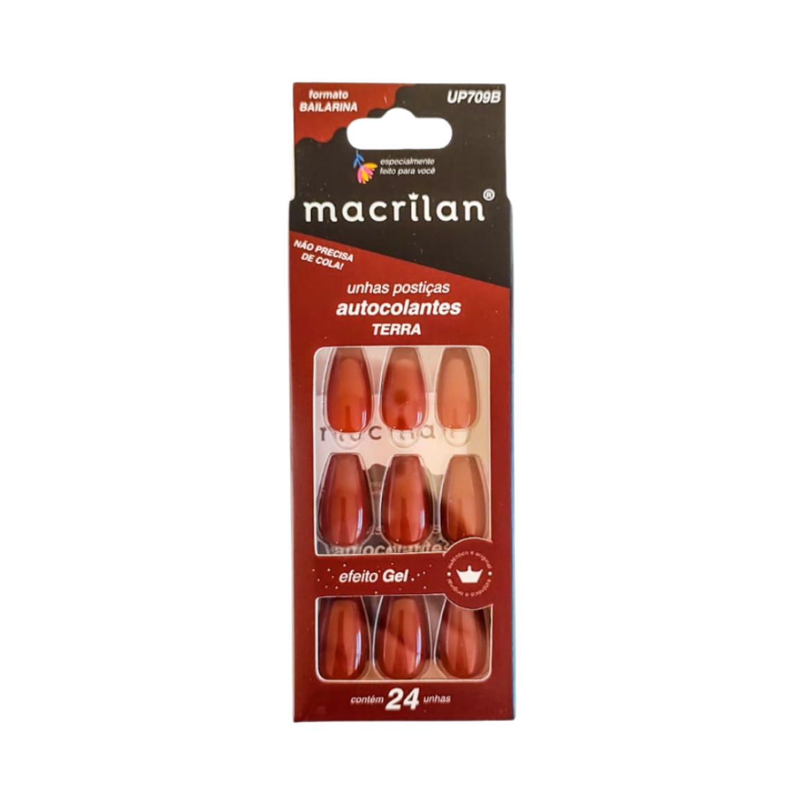 Unhas Postiças Macrilan, especialmente desenvolvidas em uma versão colorida, formato bailarina e com adesivo autocolante para uma aplicação rápida e segura. Indicadas para uso pessoal e profissional. O Kit também tem lenços umedecidos, mini lixa e palito que ajudam a preparar a unha para a aplicação e remoção.