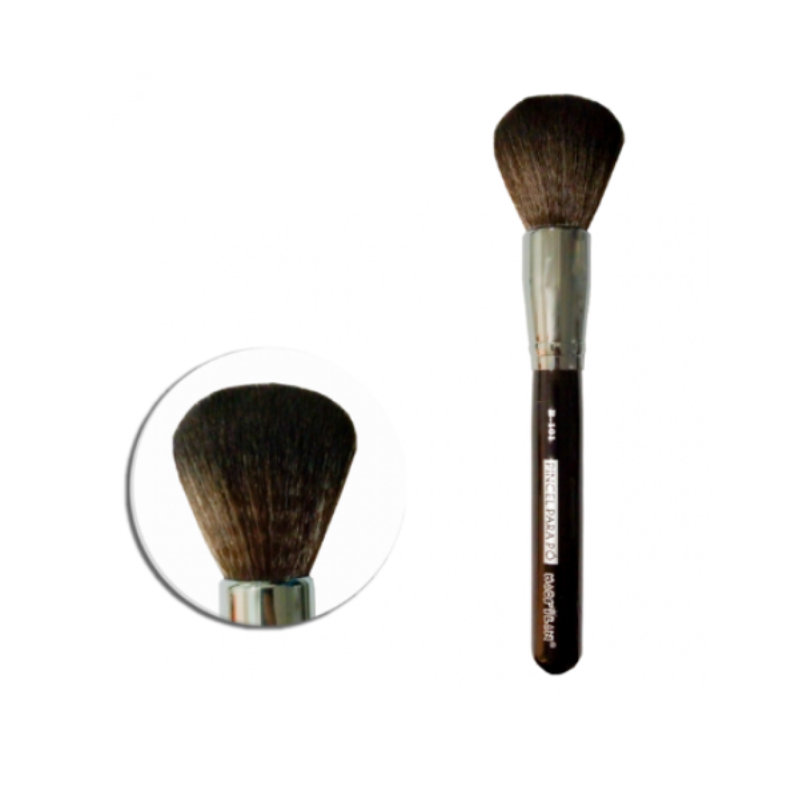 Pincel Macrilan B101, especialmente desenvolvido para aplicação de pó mineral, pó facial compacto, solto ou iluminador por toda a face e corpo. Feito com cerdas arredondadas e macias para uma aplicação suave e uma maquiagem uniforme.