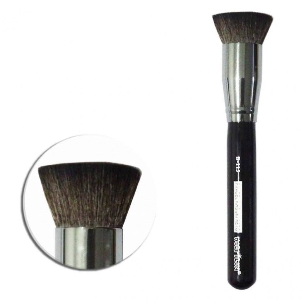 Pincel Macrilan B115, especialmente desenvolvido para aplicação de primer, base líquida ou cremosa e BB cream em todas as áreas da face. Feito com cerdas especiais e perfeitas para serem utilizadas com estes produtos, para uma aplicação suave e uma maquiagem uniforme.