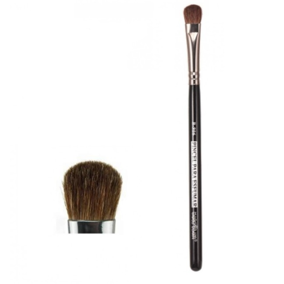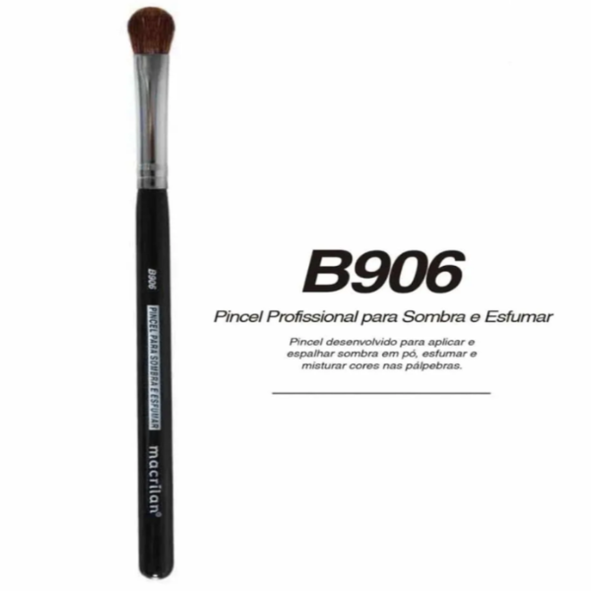 Pincel Macrilan B906 especialmente desenvolvido para aplicar e espalhar sombra em pó nas pálpebras e para esfumar. Feito com cerdas naturais e de formato arredondado que garantem precisão na aplicação.