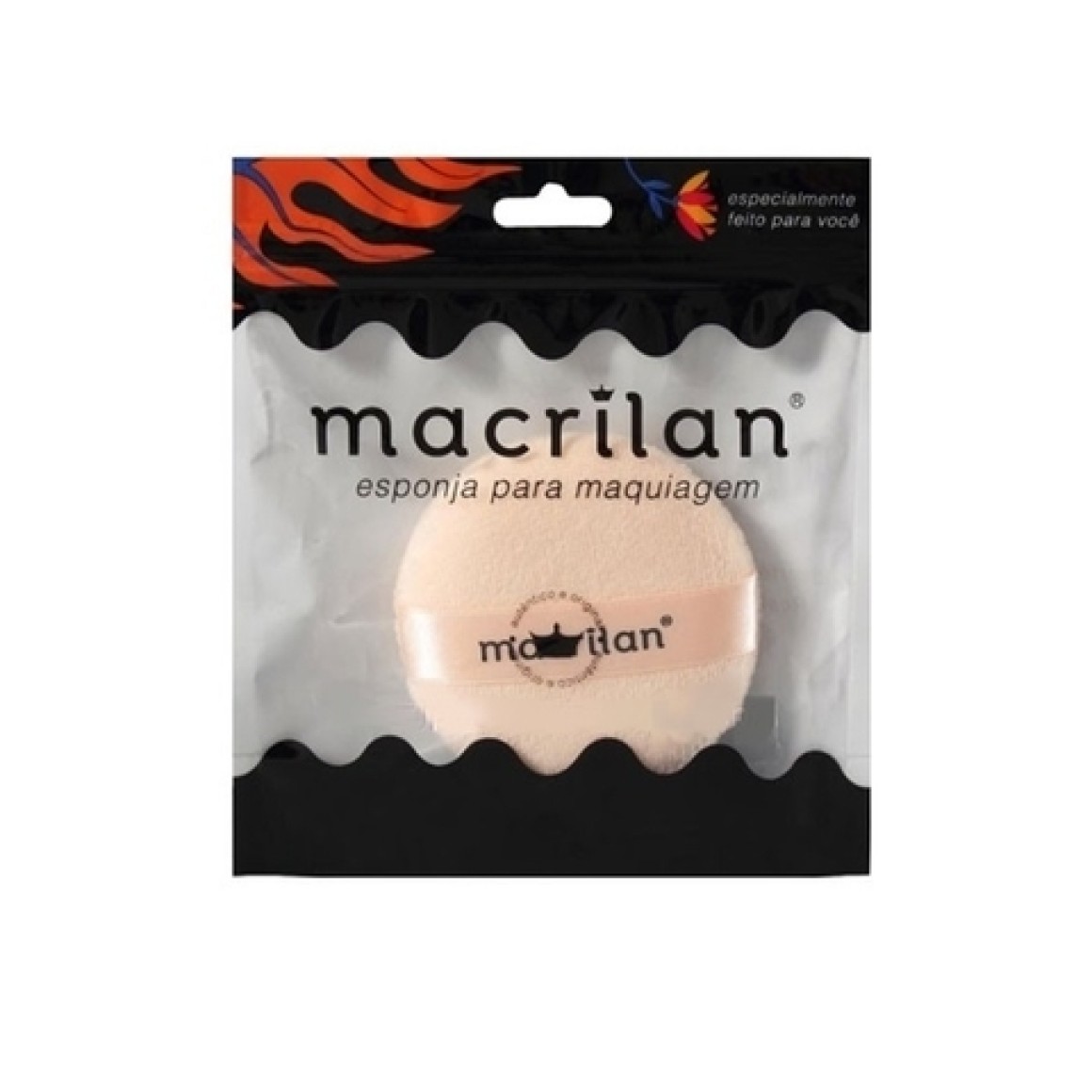 Esponja da Macrilan EJ1-14 especialmente desenvolvida para aplicação de pó facial, pó translúcido e iluminador. Vem com fita de cetim para apoio das mãos.