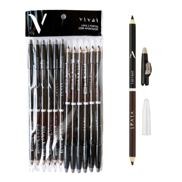 Lápis de olhos duo 2 em 1 preto+marrom com apontador. O Lapis de Olhos Vivai, também pode ser usado como delineador, graças a sua ponta precisa, que desliza com facilidade, é pigmentado na medida e com excelente fixação. Lápis que dura super, para realçar seu olhar!