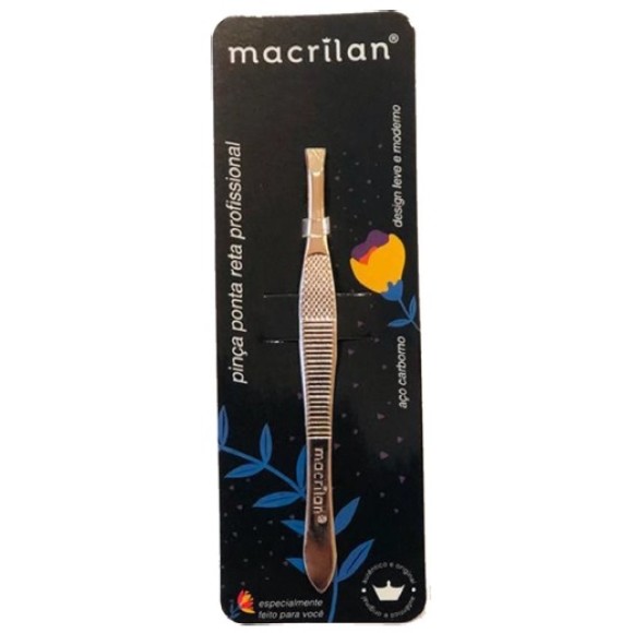 Pinça Macrilan PI-2 especialmente desenvolvida para remoção de pelos da face e corpo. Com acabamento dourado e corte reto para uso pessoal e profissional com praticidade e segurança.