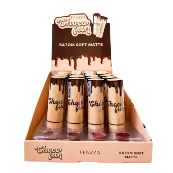 24 UNIDADES COM PROVADOR BATOM FENZZA FZ20086 SOFT MATTE CHOCO FUN