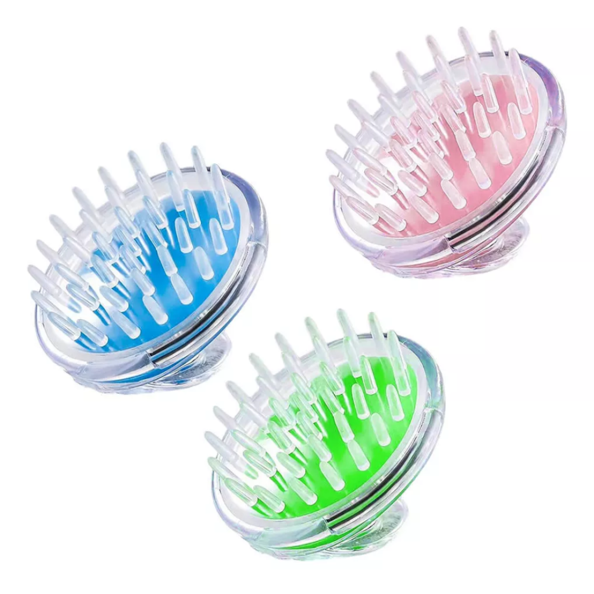 Utilize a escova massageadora para relaxar o couro cabeludo e estimular a circulação sanguínea na cabeça. Ideal para todos os tipois de cabelos. A escova será um grande aliado durante o banho para espalhar o shampoo, pentear o cabelo, retirar as caspas, além de garantir que as unhas não danifiquem seu cabelo. Ela é feita com silicone e acrilico com um design ergonômico, com encaixe perfeito e suave na palma da mão, deixando a escova firme durante o processo.