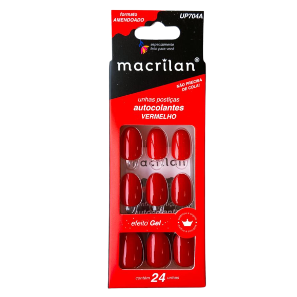 UNHA MACRILAN UP704A AUTOCOLANTE AMENDOADO VERMELHO (EMB C/24)