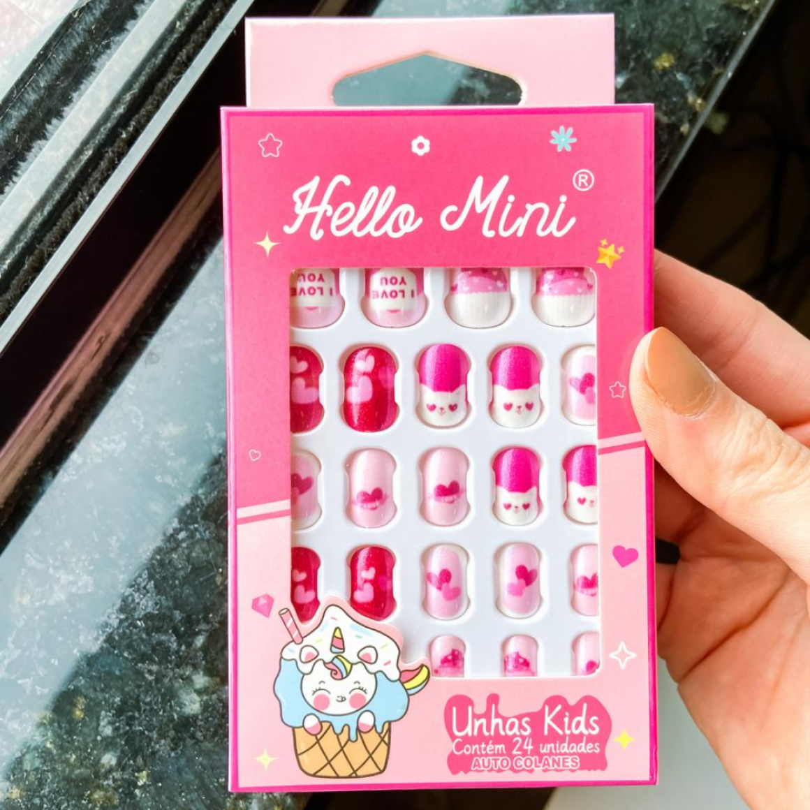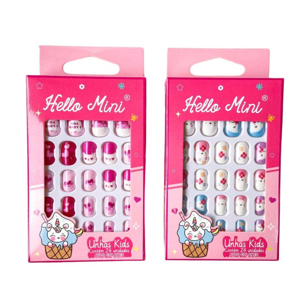 Kit com 24 unhas autocolantes infantis