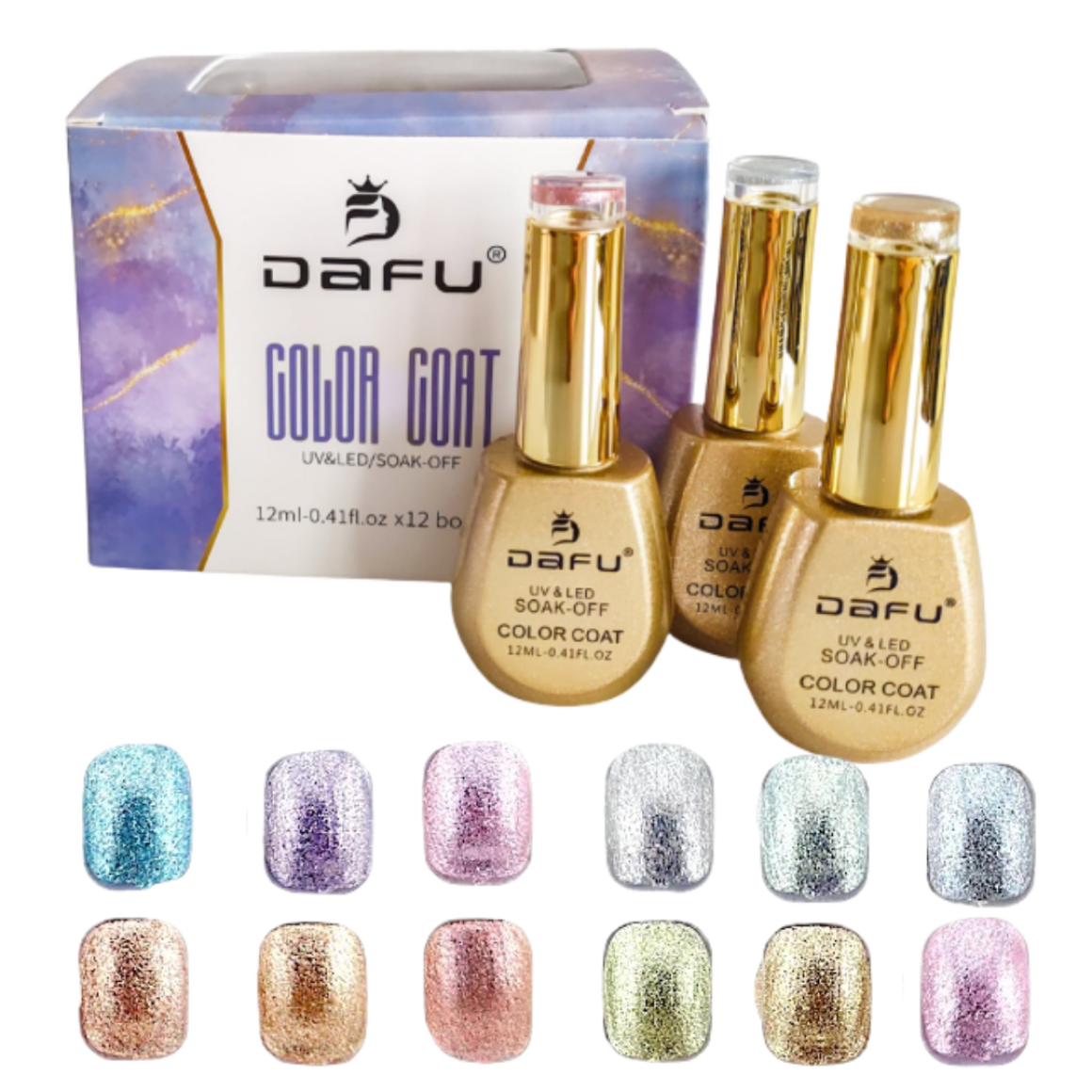 12 ESMALTE GEL DAFU DF-EMUV12-1 UV&LED GLITTER 12ML BOX