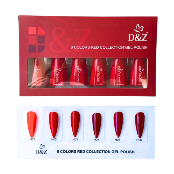 6 ESMALTE GEL D&Z 3249-H UV&LED FASHION RED 12G BOX KIT
