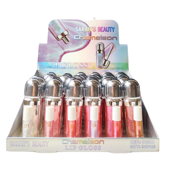 36 LIP GLOSS SARAH'S BEAUTY S6581 TENDENCIA CHAMELEON BOX COM PROVADORES