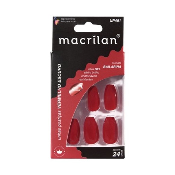 Unhas Postiças UP401 estilo bailarina Macrilan cor Vermelho escuro