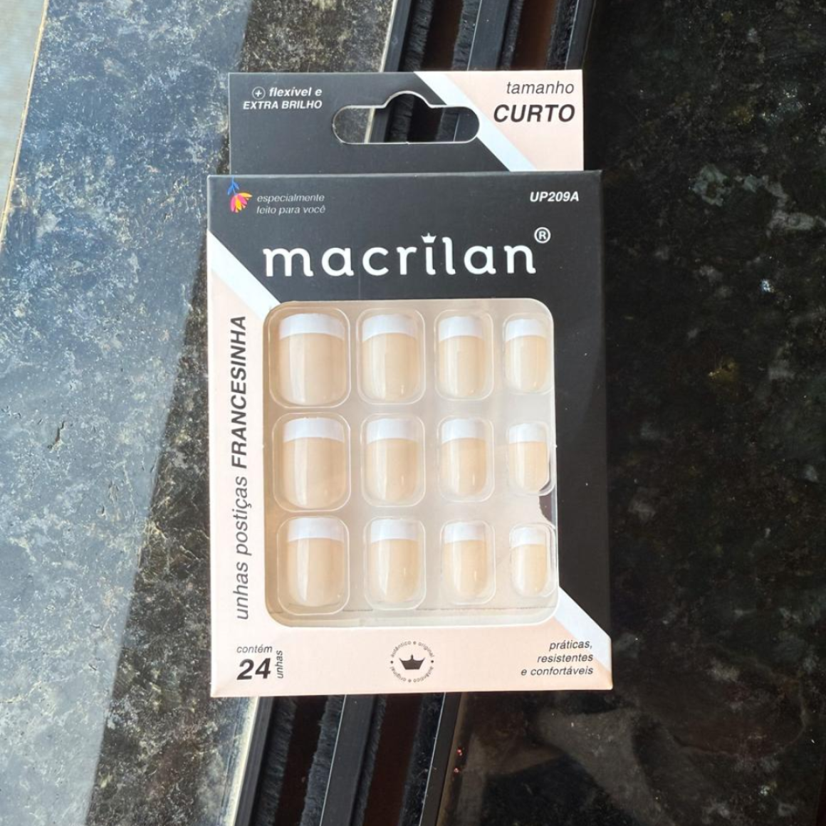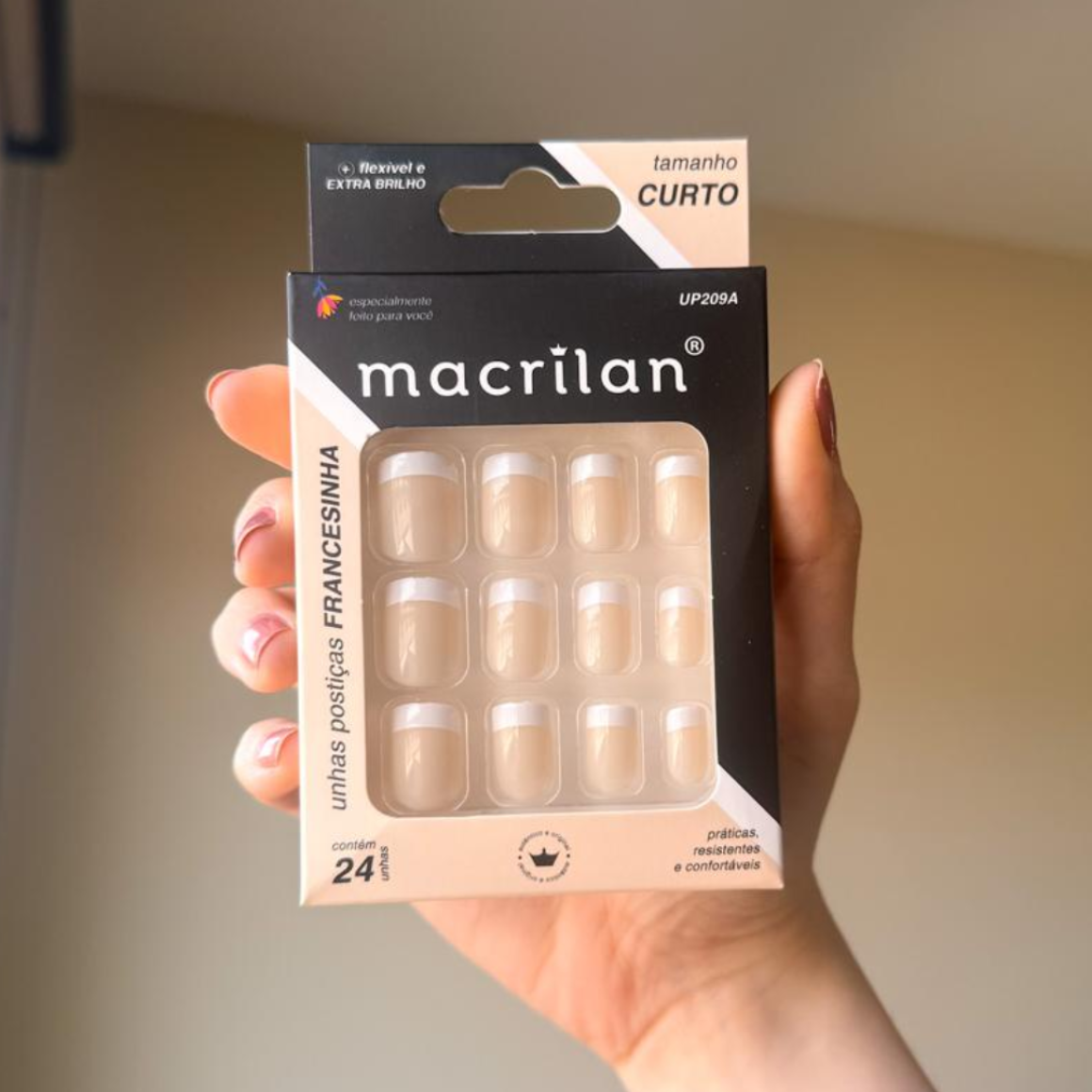 Selecione os tamanhos que mais se aproximam de suas unhas naturais. Lixe as laterais e a borda para um encaixe ideal; Repita o processo em todas as unhas; Aplique a cola de unha postiça Macrilan em suas unhas naturais; Fixe a unha postiça e pressione por 15 segundos.