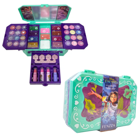 Maleta com Kit Maquiagem c/ Espelho e essa embalagem lindíssima do desenho Encanto, um produto que encanta as crianças!