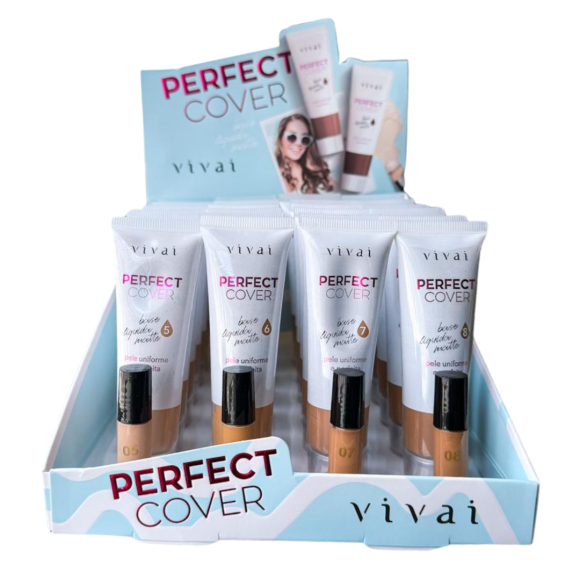 A Base líquida matte Perfect Cover da Vivai disfarça pequenas imperfeições deixando a pele uniforme com efeito matte. Espalha com facilidade e permite a construção de camadas. Pele uniforme e perfeita, contém no total 4 tons escuros.