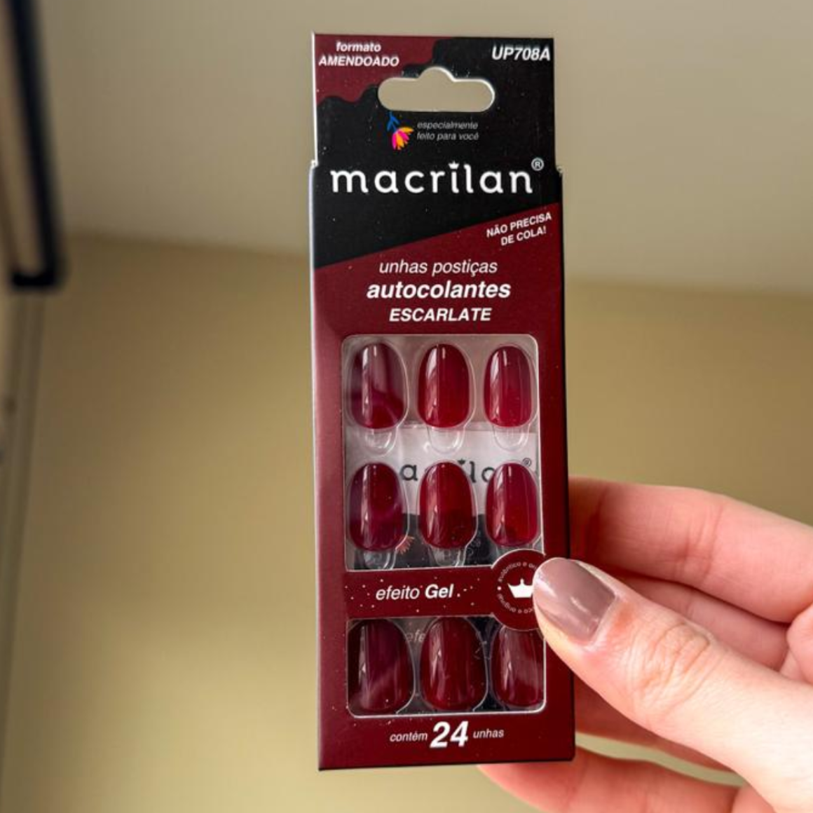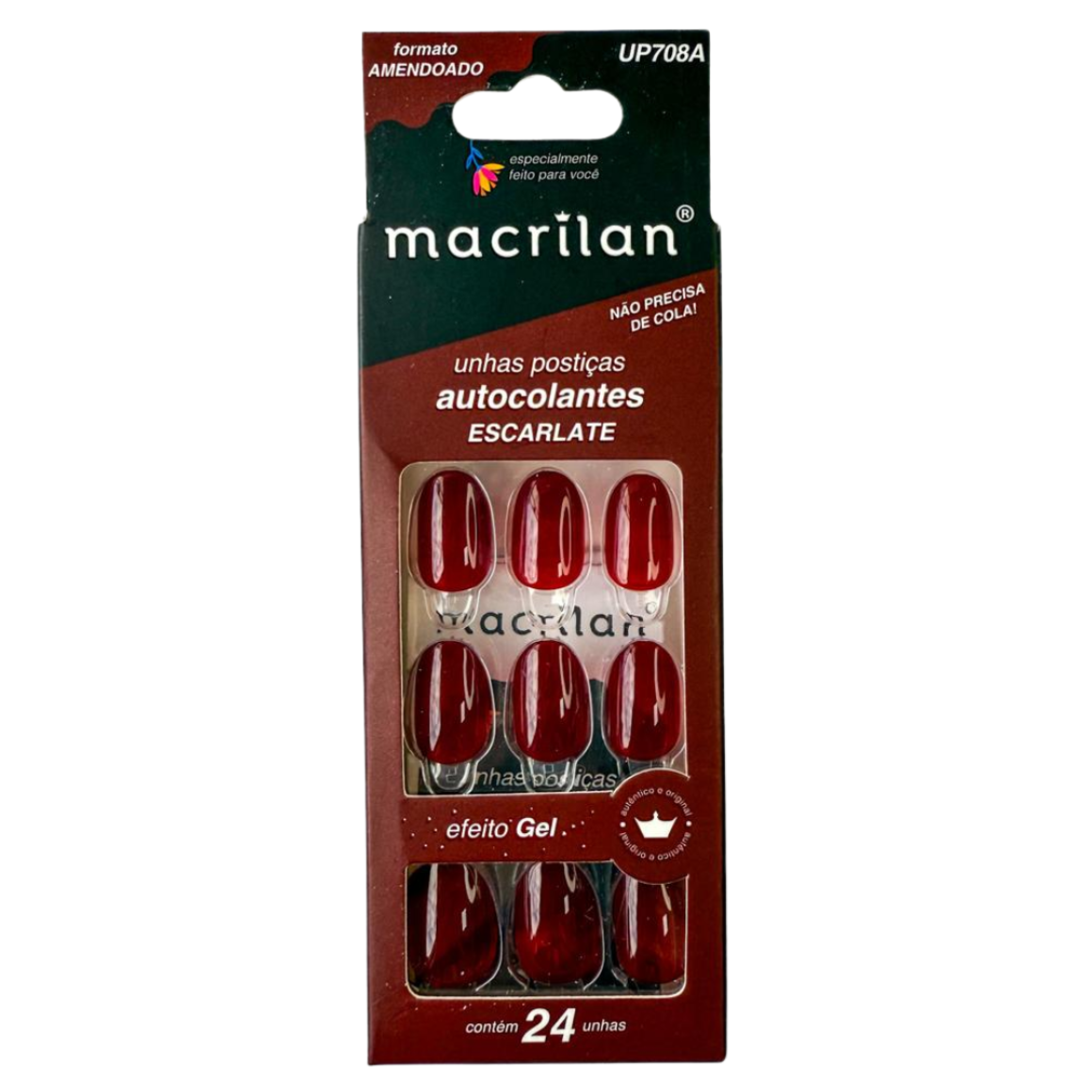 UNHA MACRILAN UP708A AUTOCOLANTE ALMOND ESCARLATE (EMB C/24)