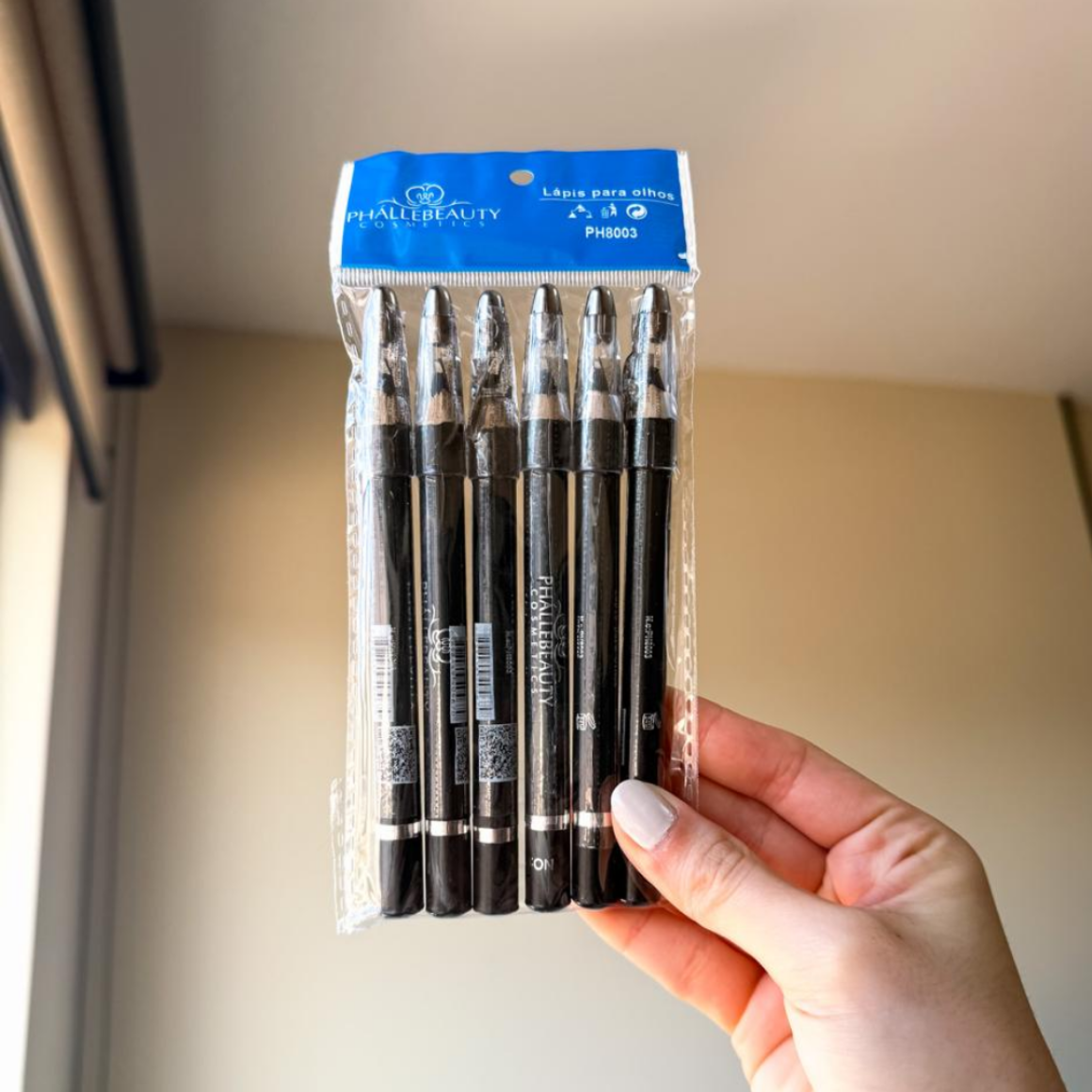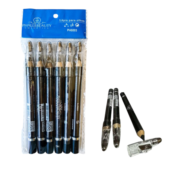 6 LAPIS PHALLEBEAUTY PH8003 OLHO PRETO C/ APONT KIT