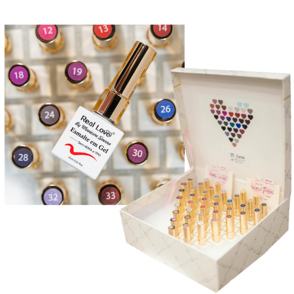 KIT ESMALTE GEL REAL LOVE KIT-ESM 37CORES+BASE+TOPCOAT 10ML (C/39)