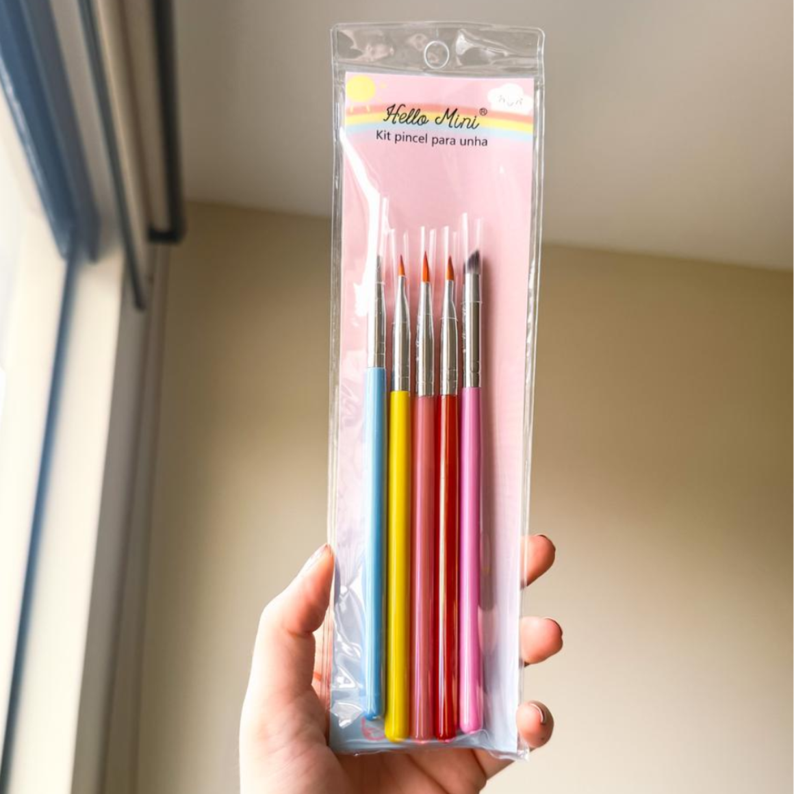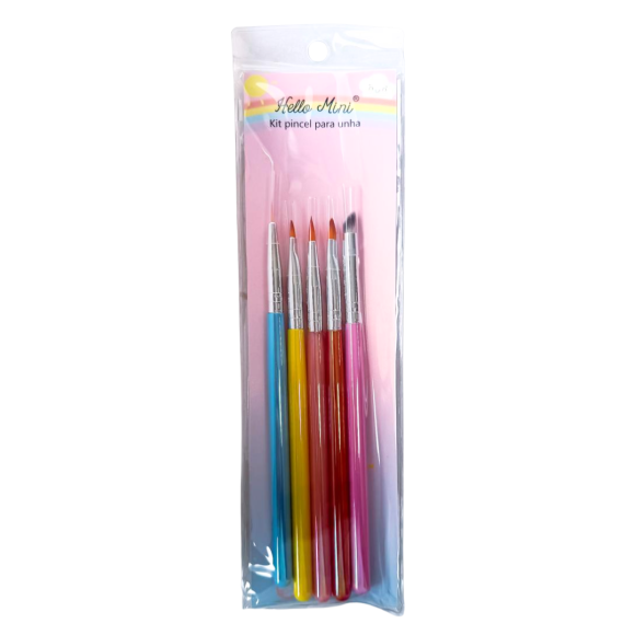 KIT PINCEL P/ UNHA ARTISTICA E GEL HELLO MINI KIT1293-5 (C/5)