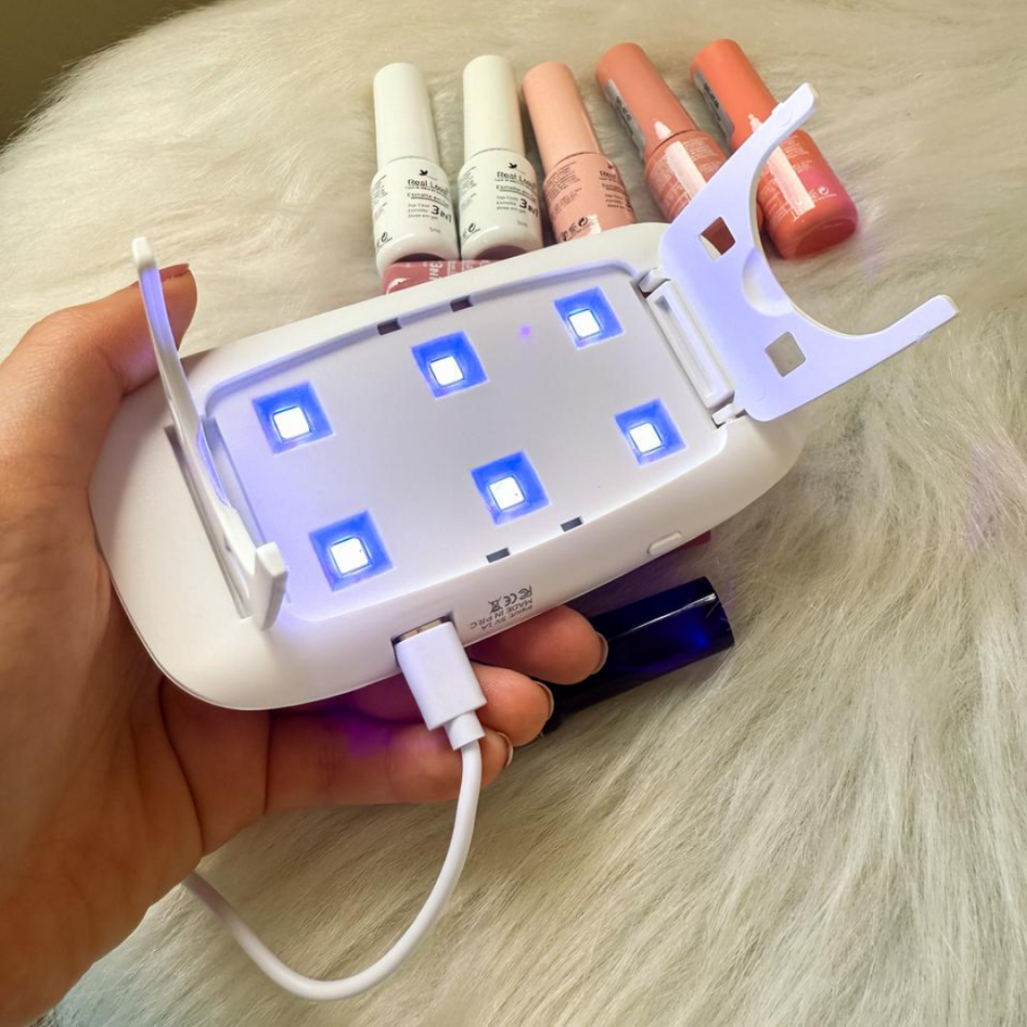Uma mini cabine LED/UV é um dispositivo compacto projetado para secar e curar esmaltes em gel e outros produtos para unhas que exigem exposição à luz UV ou LED.