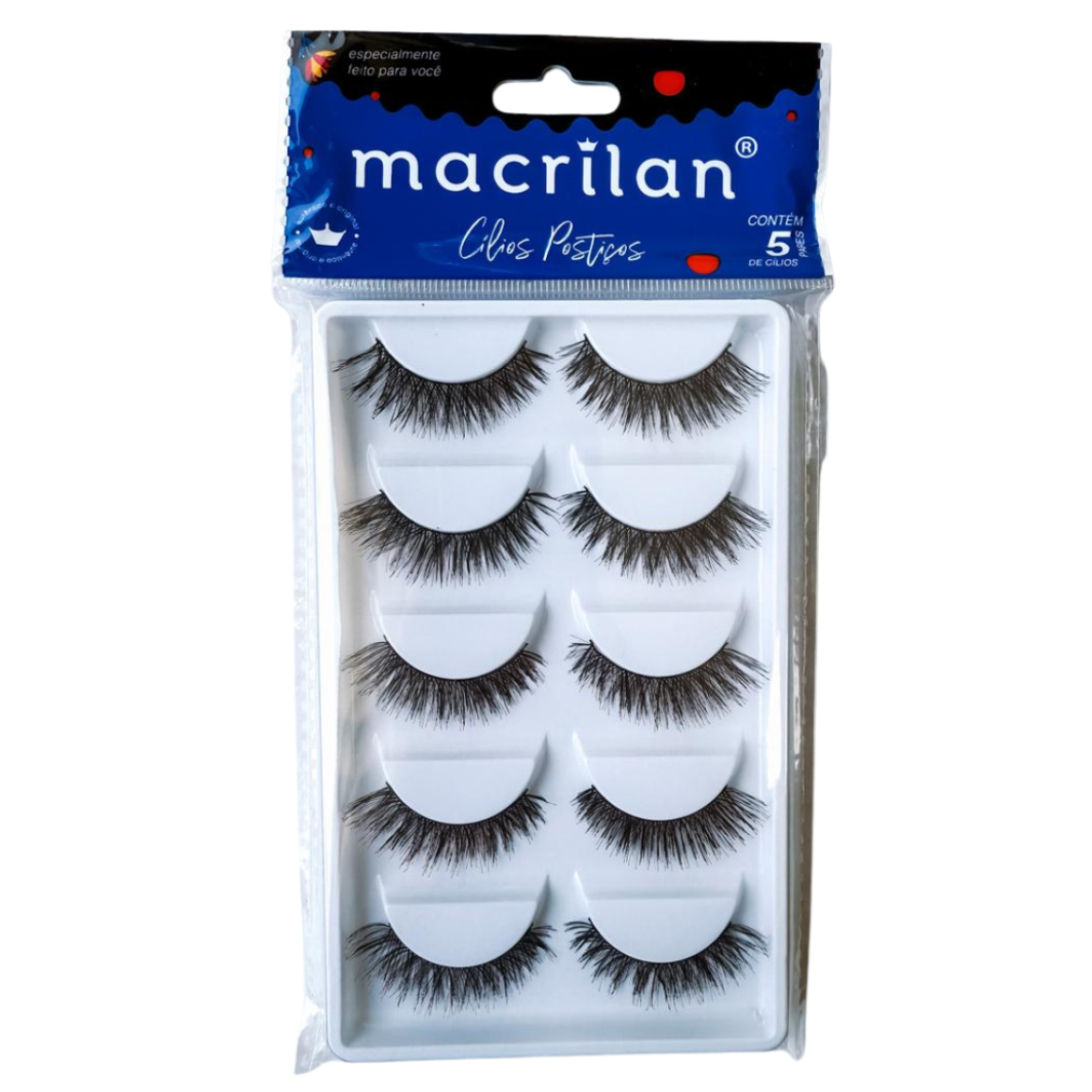 Cílios postiços CL104-5 Macrilan especialmente desenvolvidos para preencher, realçar e dar volume aos cílios naturais com praticidade.