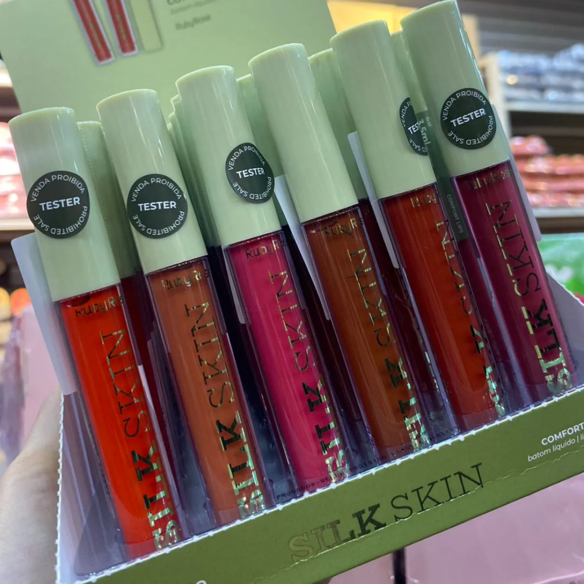 O Batom da linha Silk Skin da Ruby Rose tem ótima pigmentação e textura confortável nos lábios.