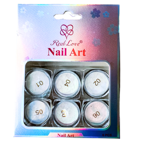 ENFEITE P/ UNHA REAL LOVE GOS10 PO DE FADA/BORBOLETA COLORS (C/6+3 PINCEL)