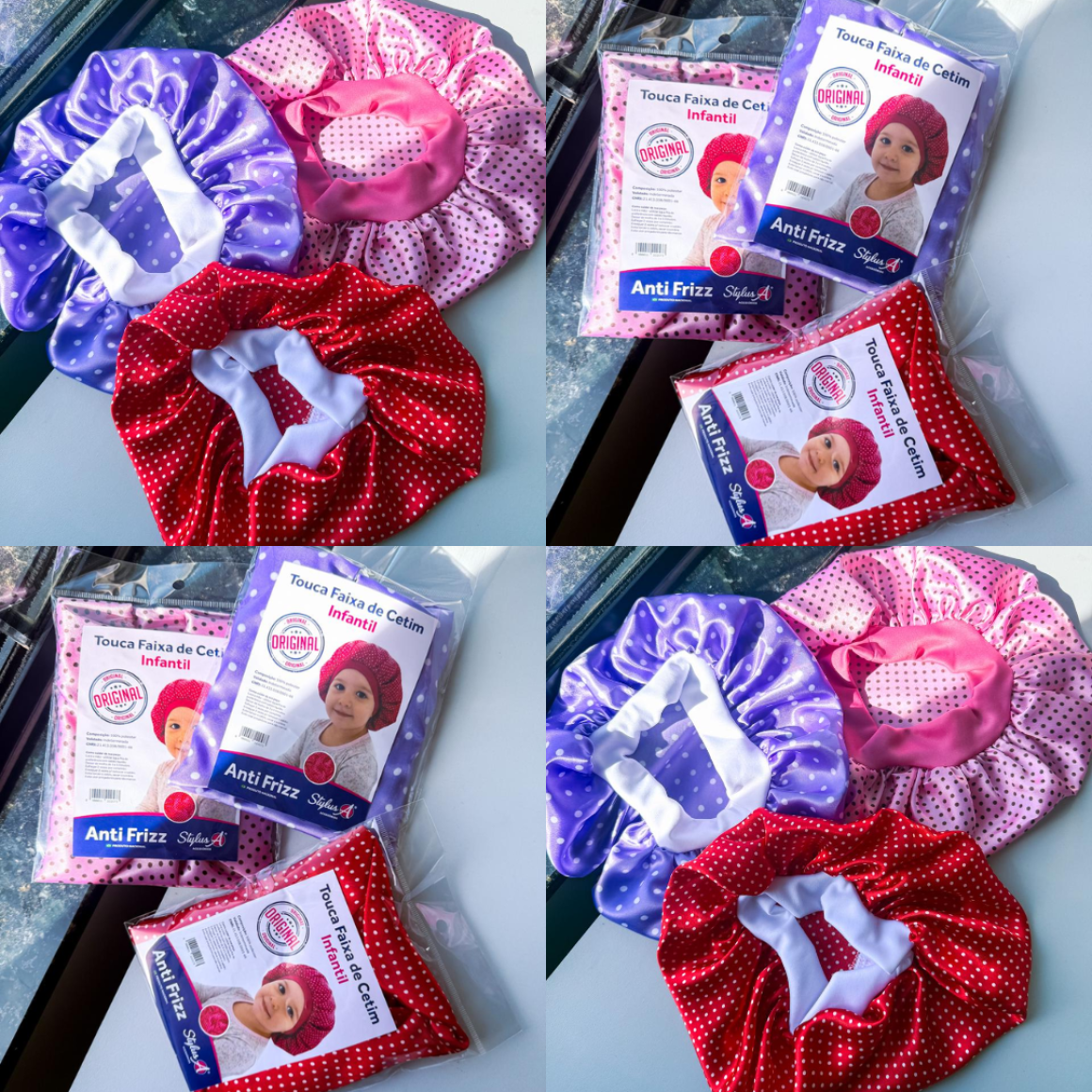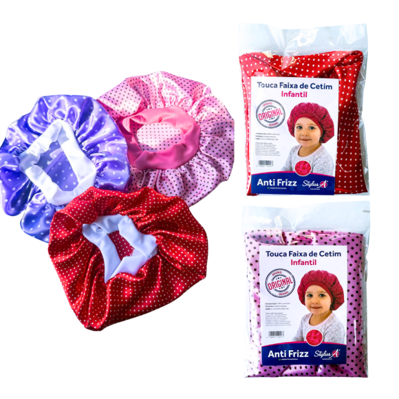 TOUCA FAIXA DE CETIM ANTI-FRIZZ INFANTIL BOLINHAS