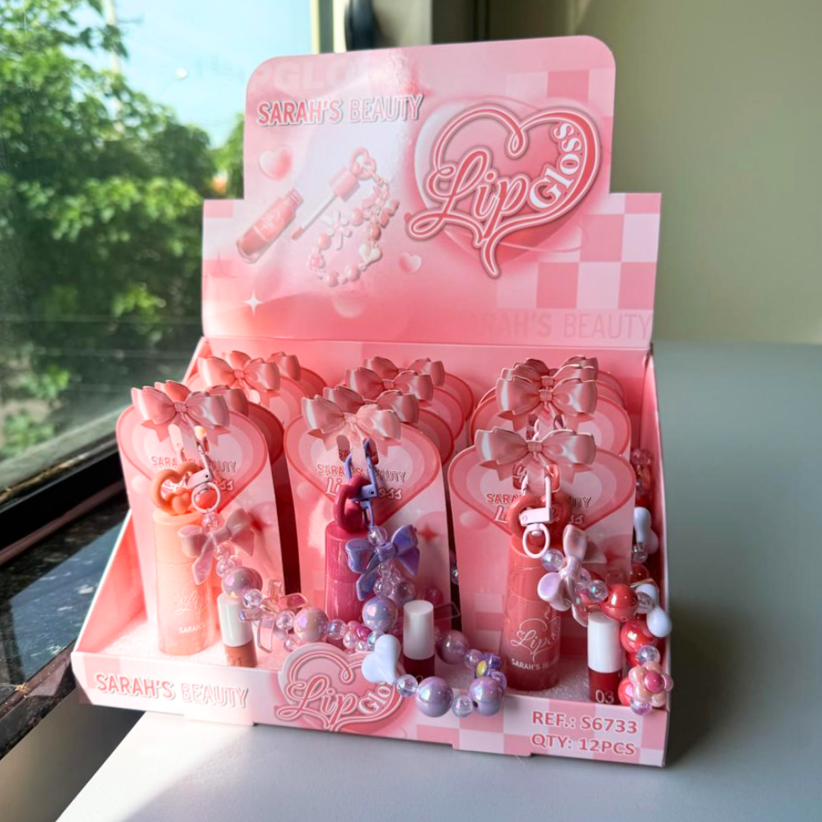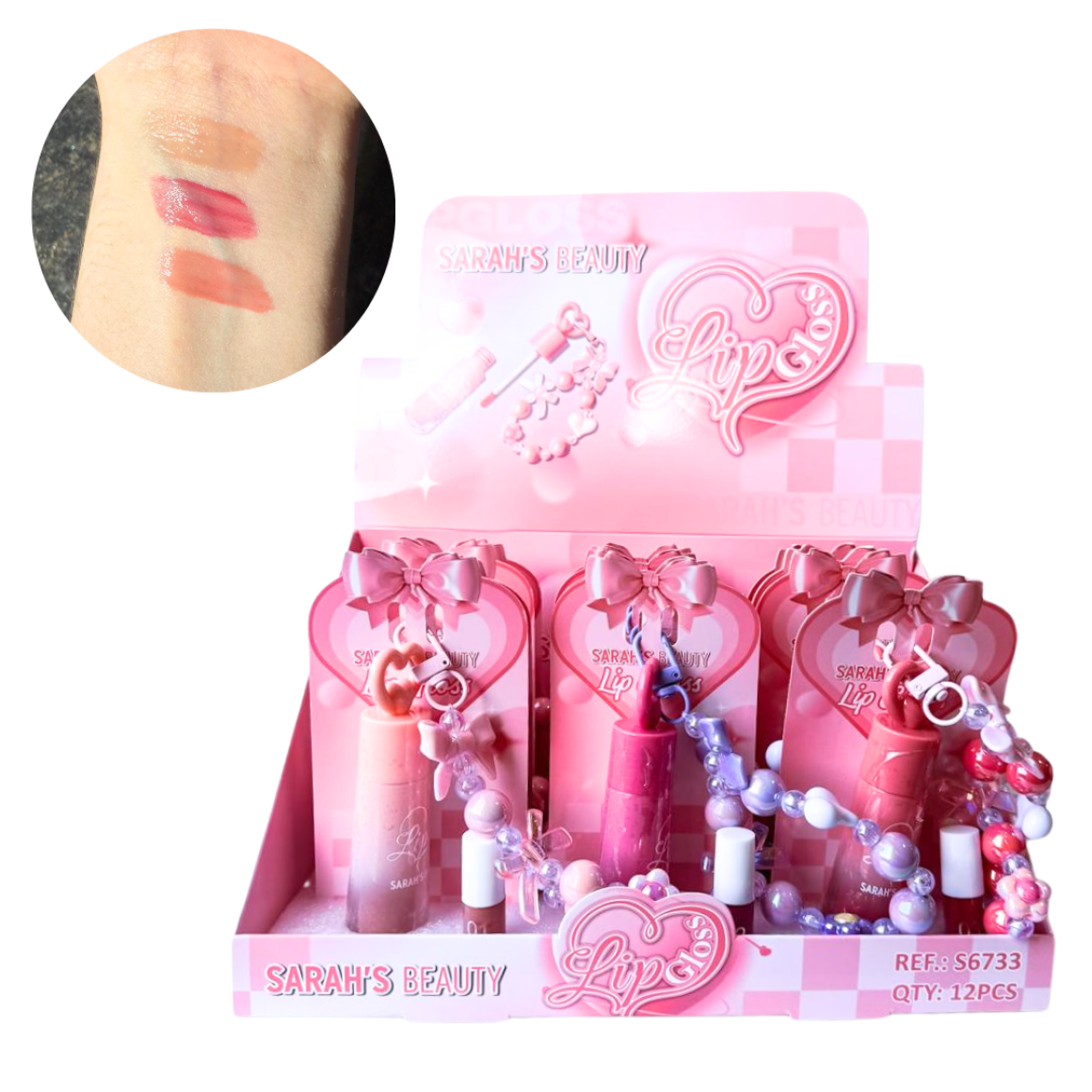 12 LIP GLOSS SARAH'S BEAUTY S6733 CHAVEIRO+PULSEIRA BOX COM PROVADORES