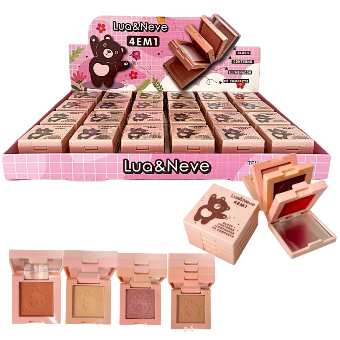 24 QUARTETO LUA&NEVE LN02460 BLUSH/CONT/ILUMI/POCOMPACTO 4 EM 1 BOX